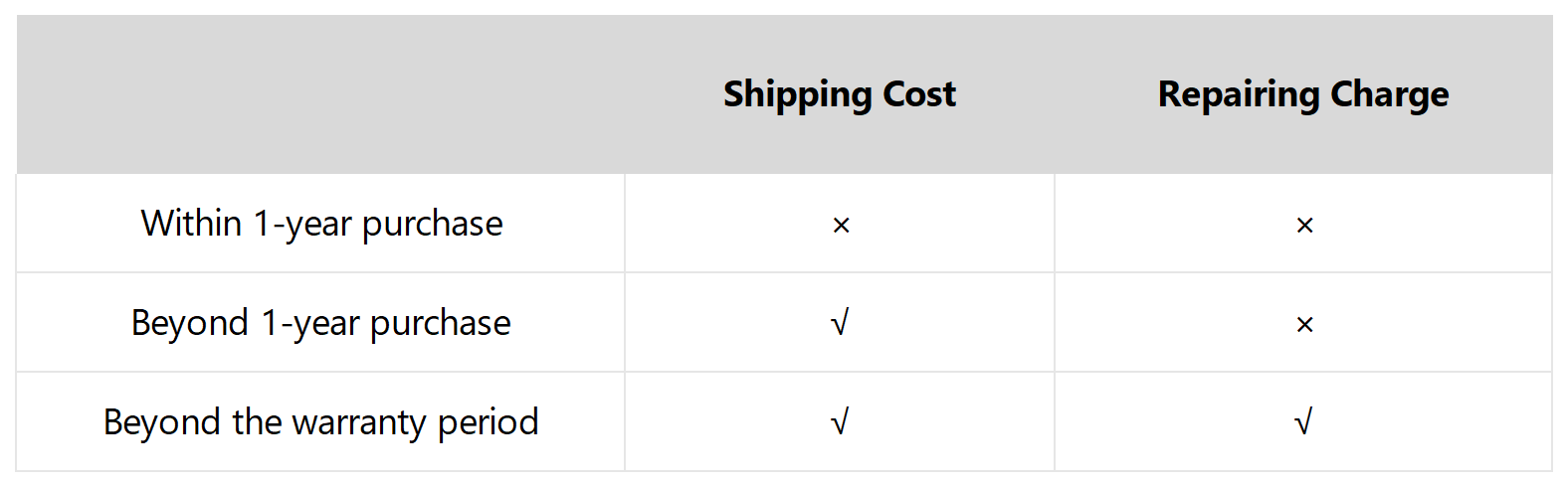 - We reserve the right to modify or terminate the warranty service if the product has been subjected to illegal modification or incorrect operation without our approval, which may void the warranty.